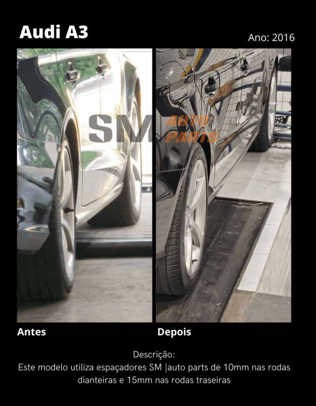 Este modelo utiliza espaçadores SM|Auto Parts de 12,5mm nas rodas dianteiras e 15mm nas rodas traseiras.
