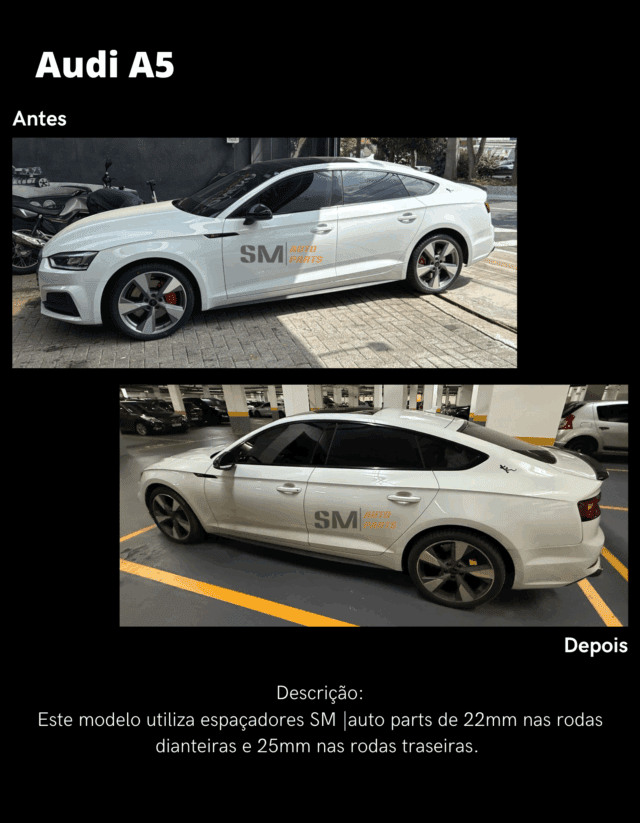 Veja alguns modelos da AUDI utilizando os espaçadores SM AUTO PARTS!